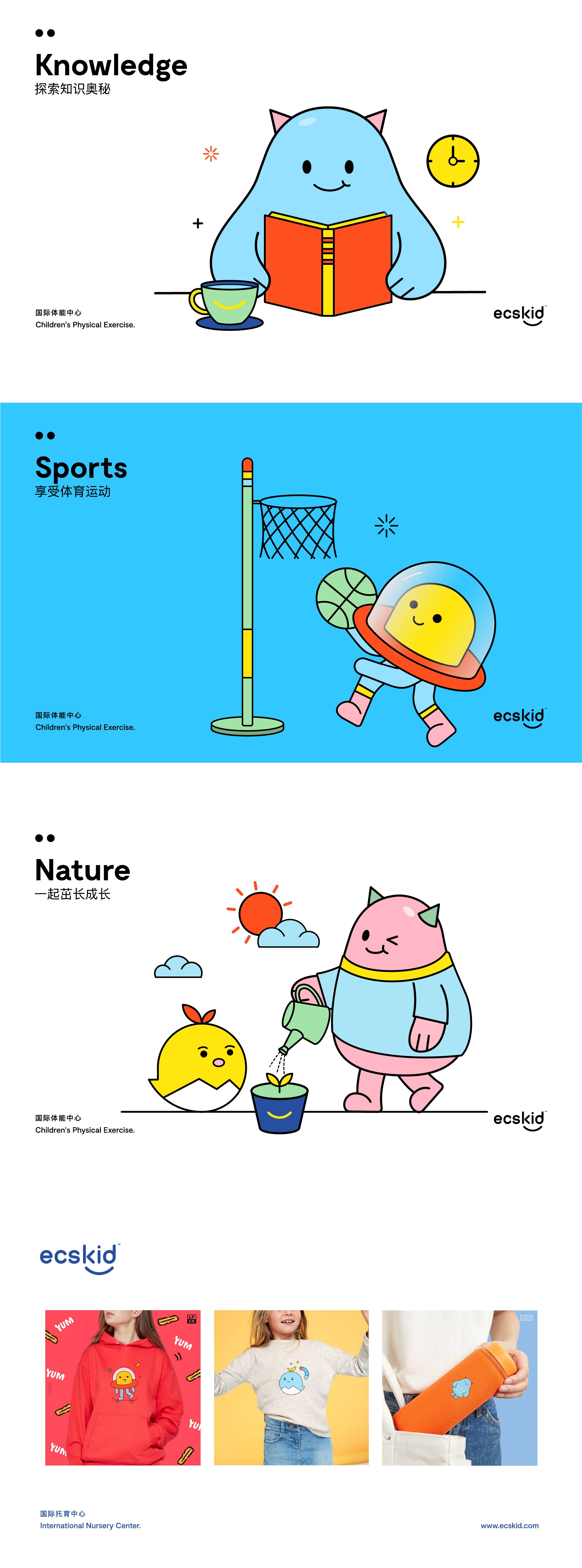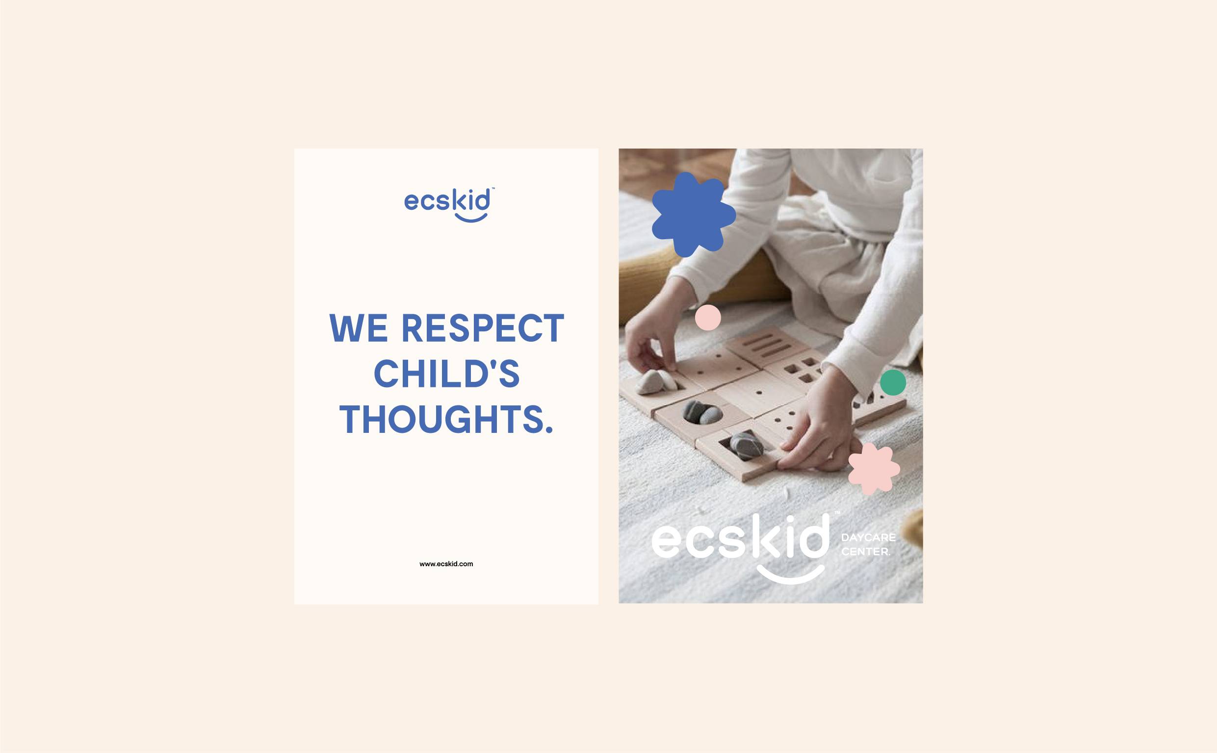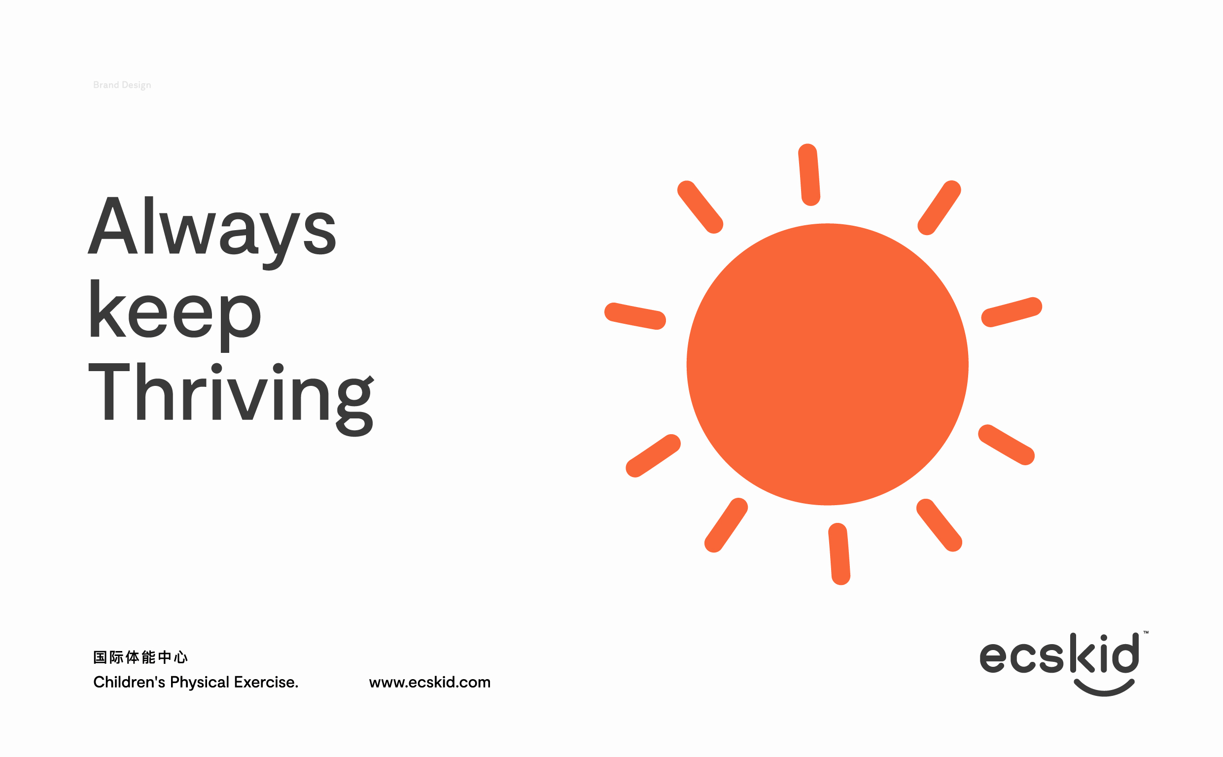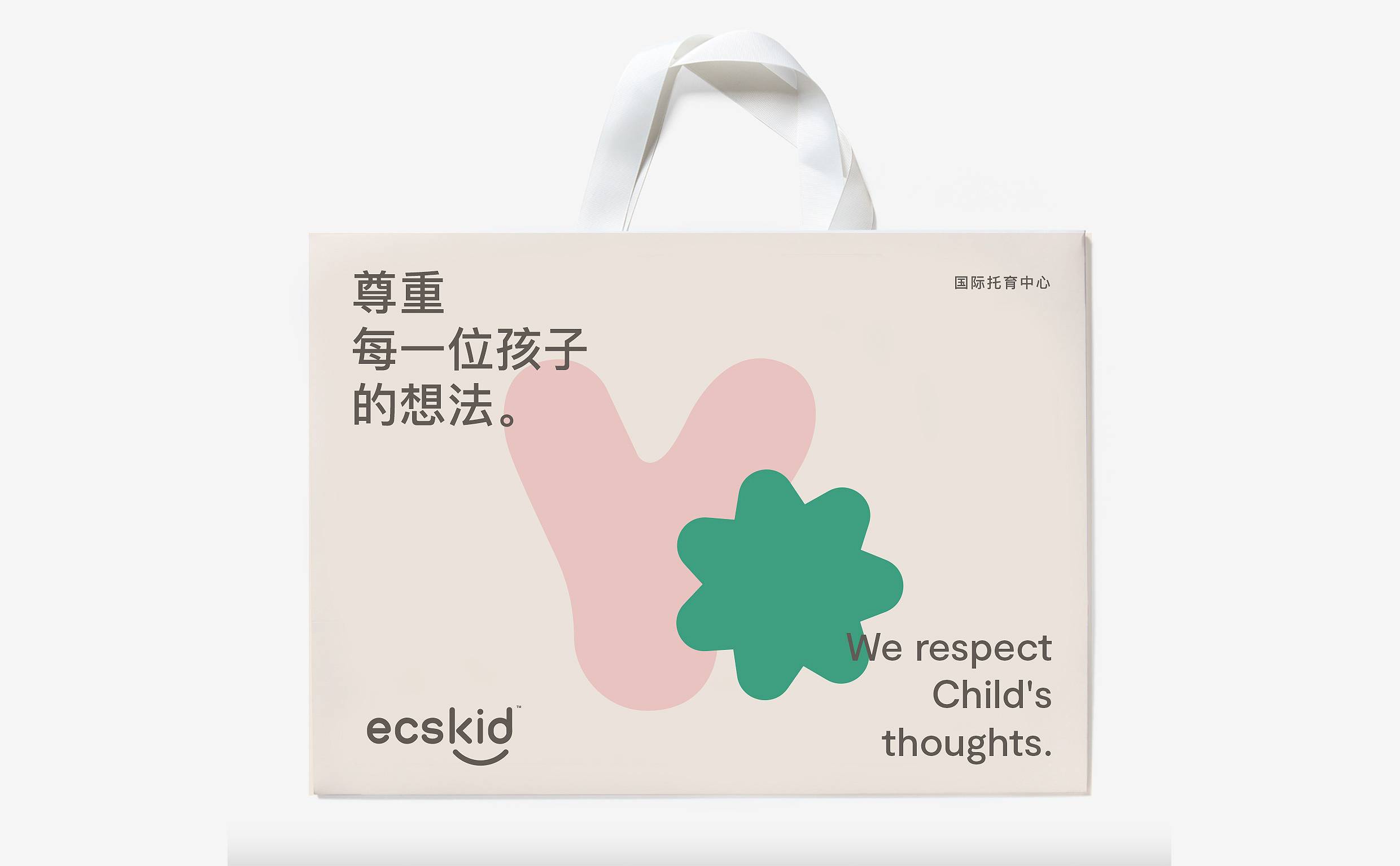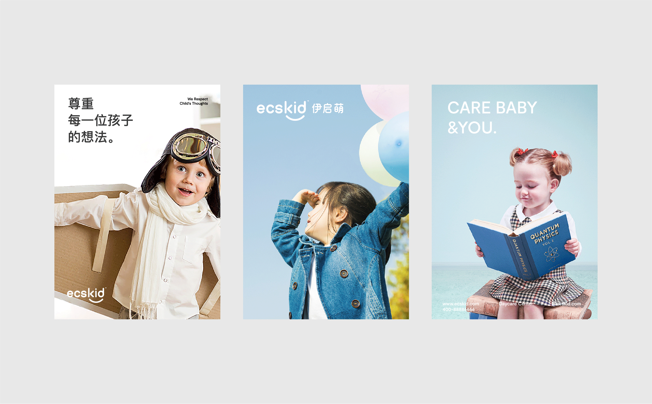 为了对品牌的品类联想更清晰,我们确定了“e=education,教育;c=care,关爱照顾;s=soport,运动;kid=儿童”的品牌内涵,以此组成品牌的英文名称,以符合“专注早教、托育、体适能”的品牌定位。