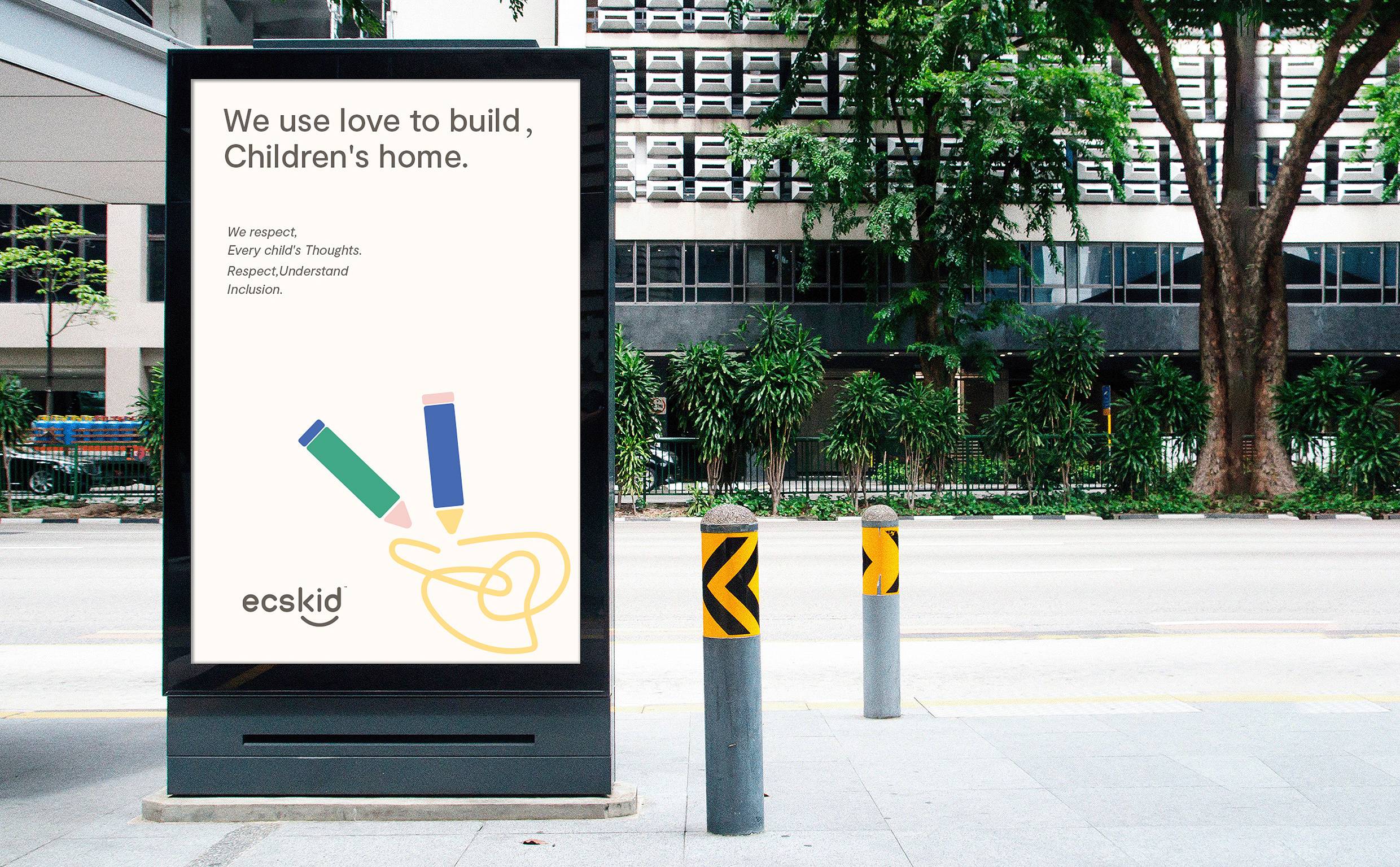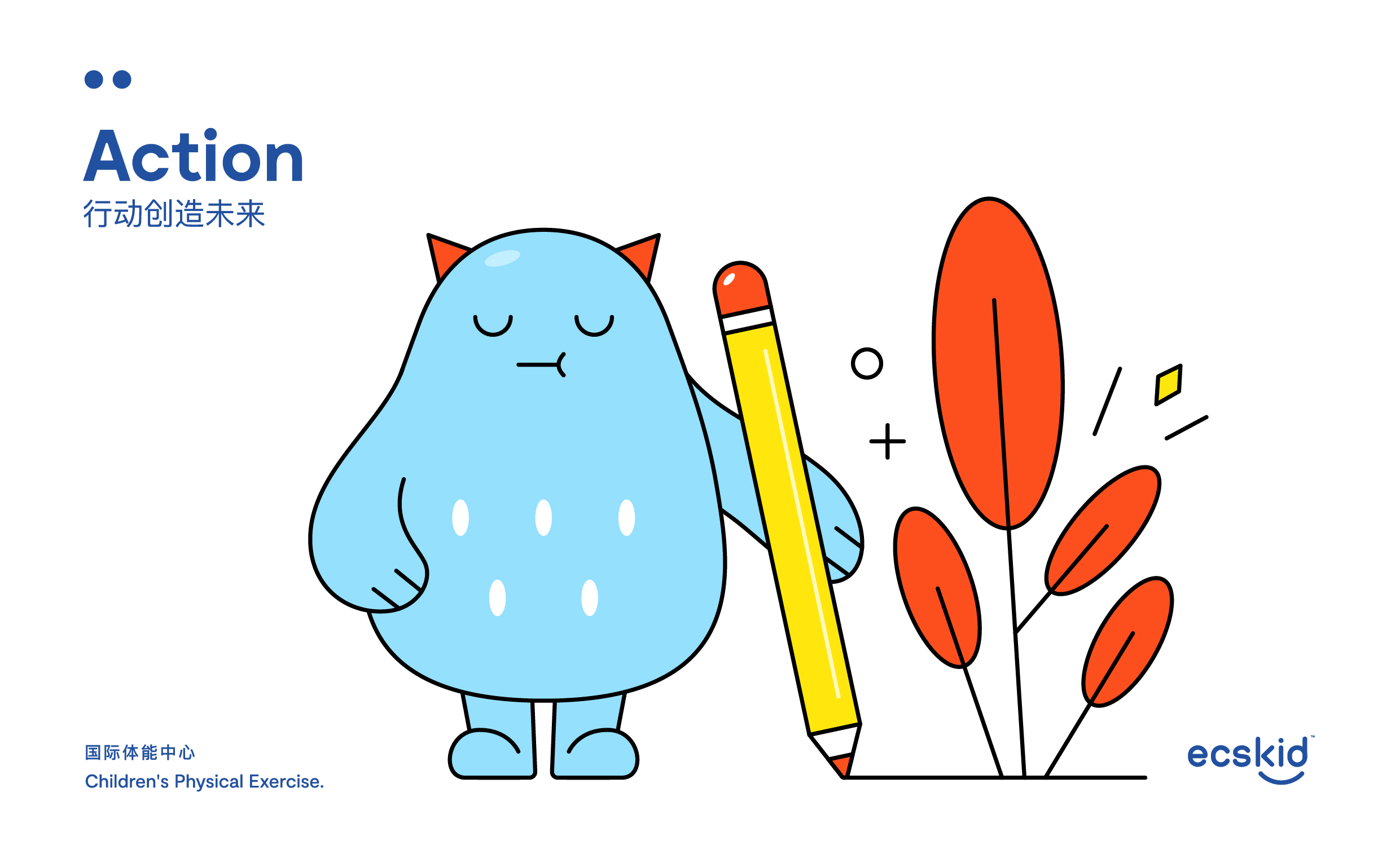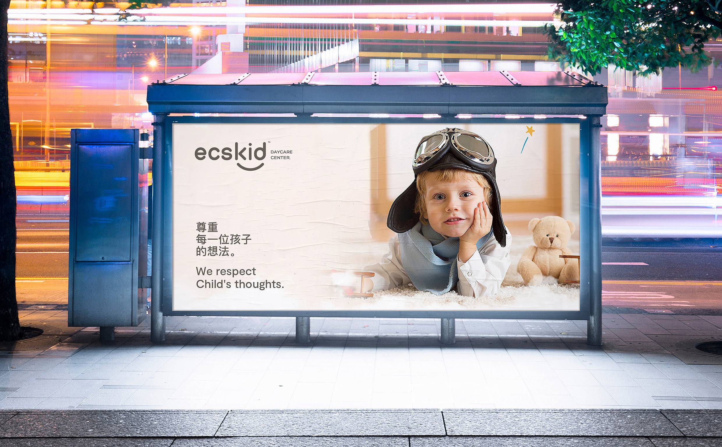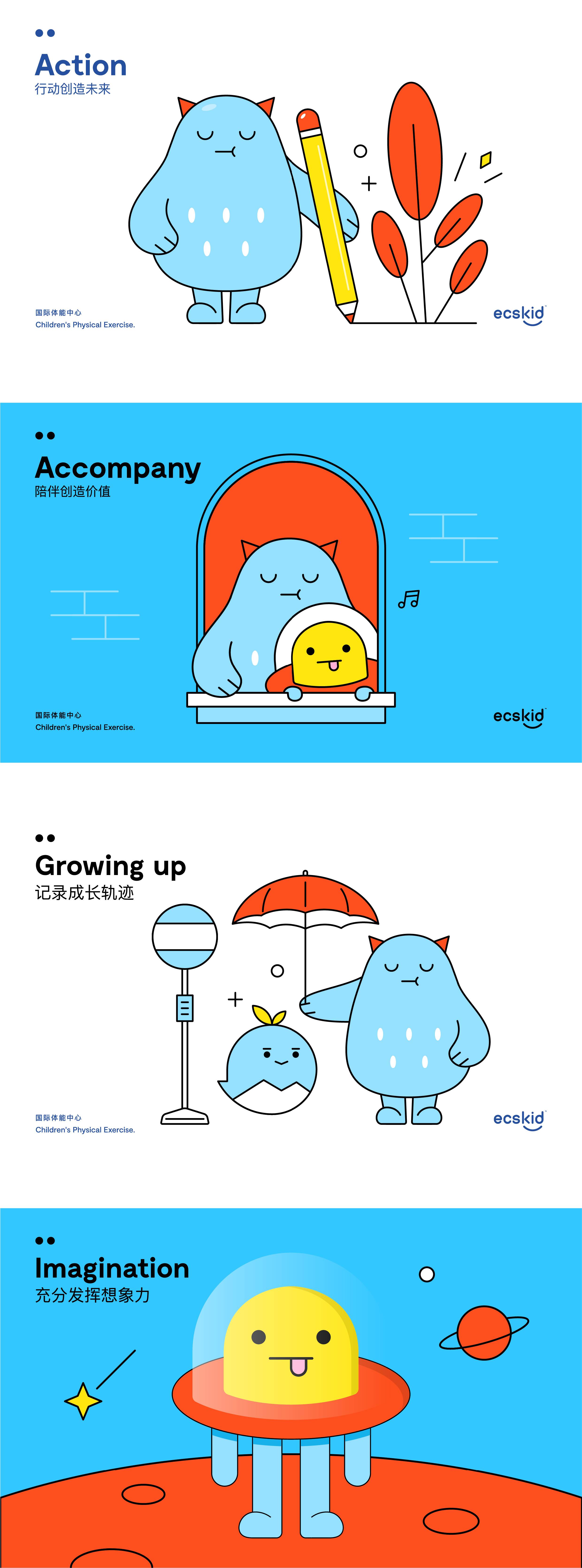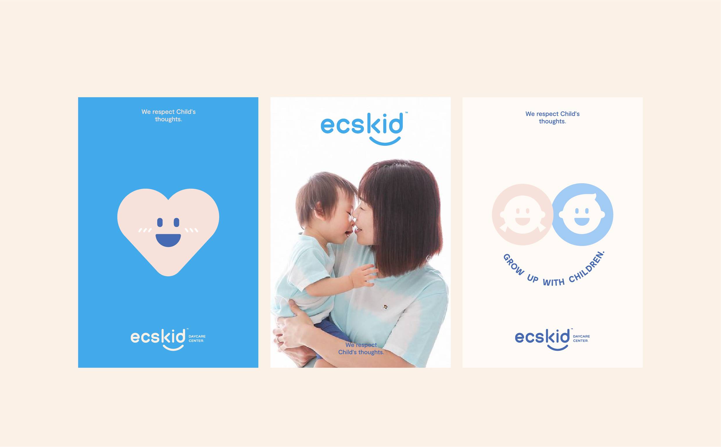 为了对品牌的品类联想更清晰,我们确定了“e=education,教育;c=care,关爱照顾;s=soport,运动;kid=儿童”的品牌内涵,以此组成品牌的英文名称,以符合“专注早教、托育、体适能”的品牌定位。