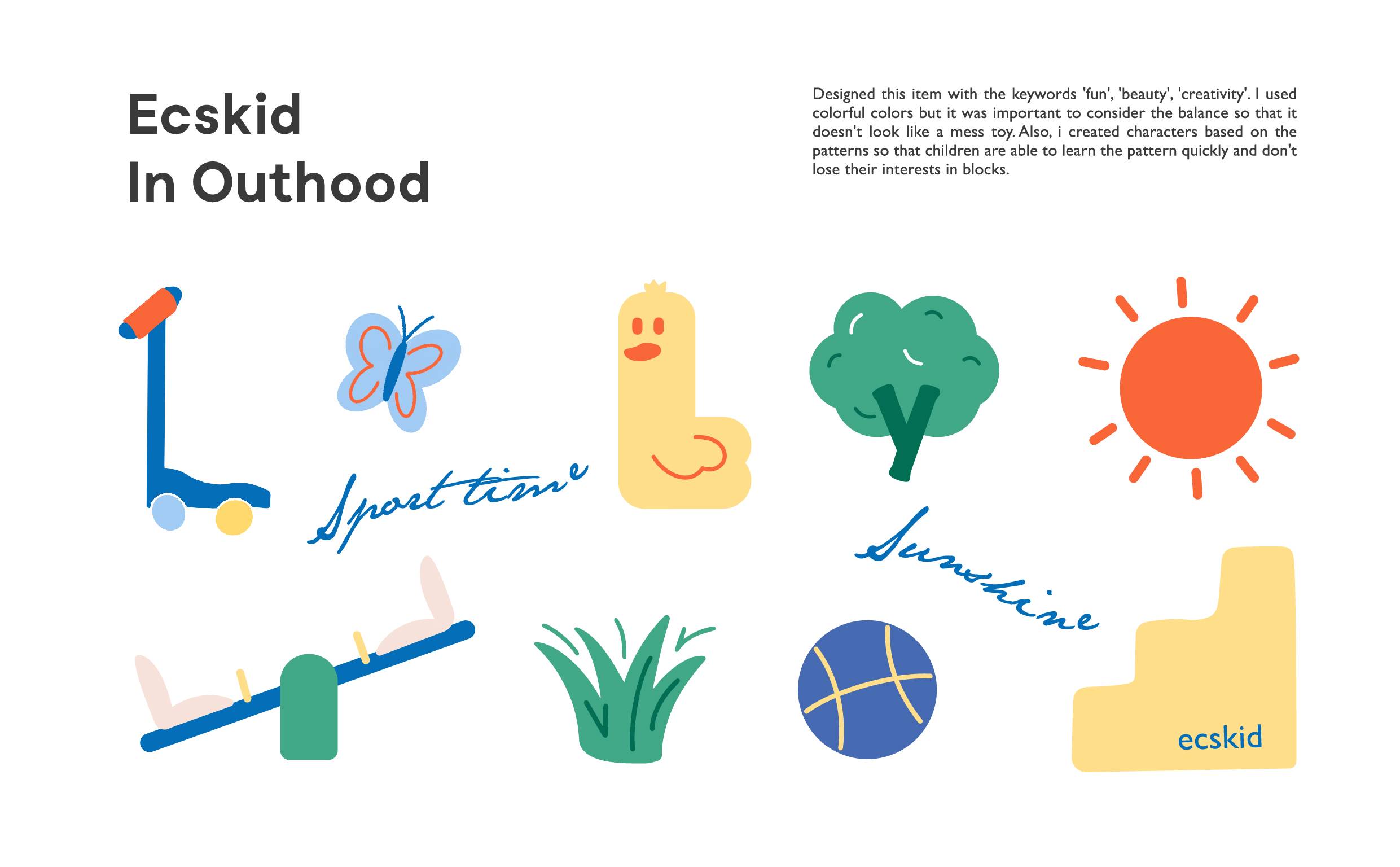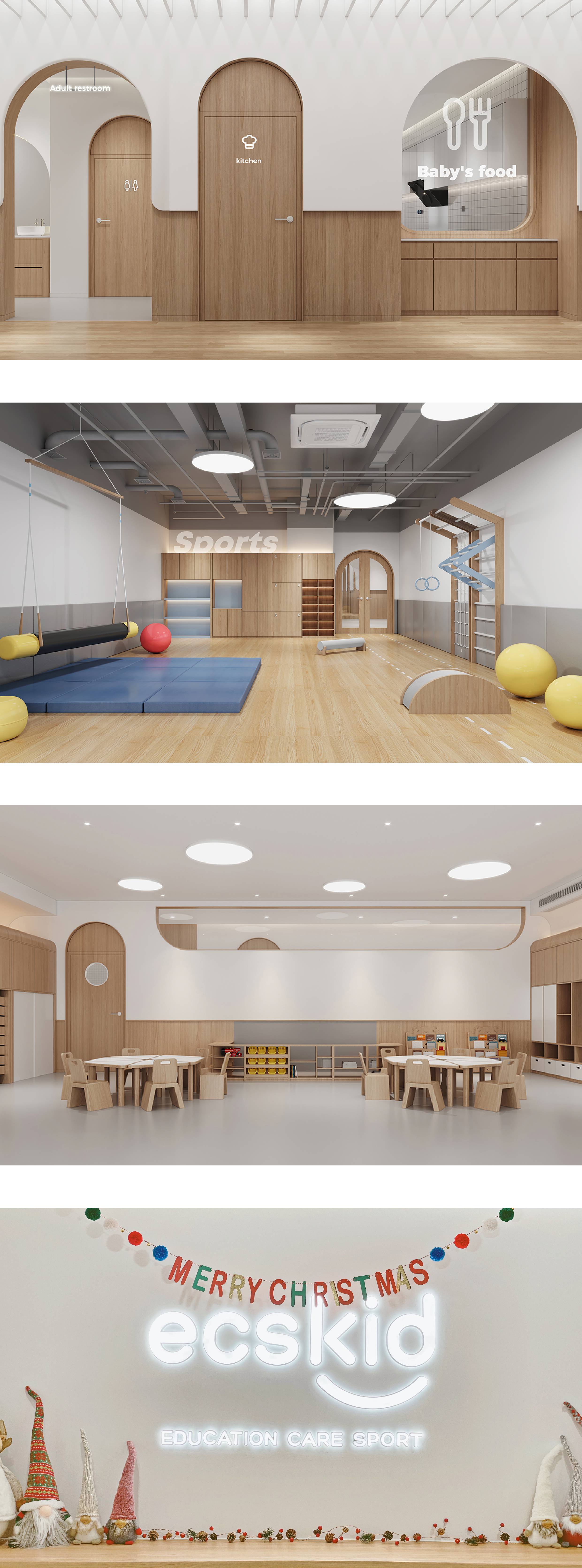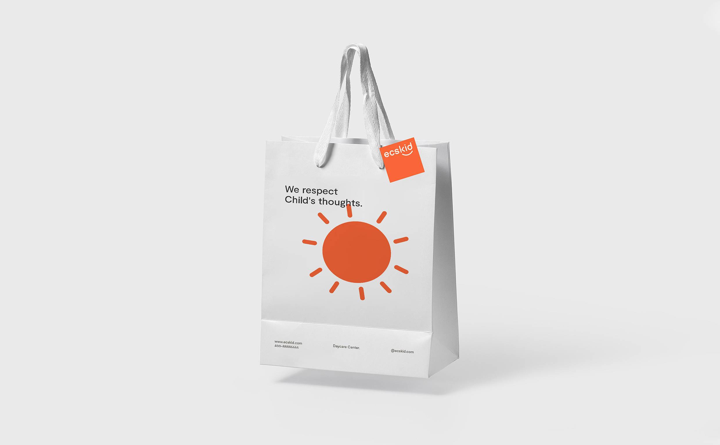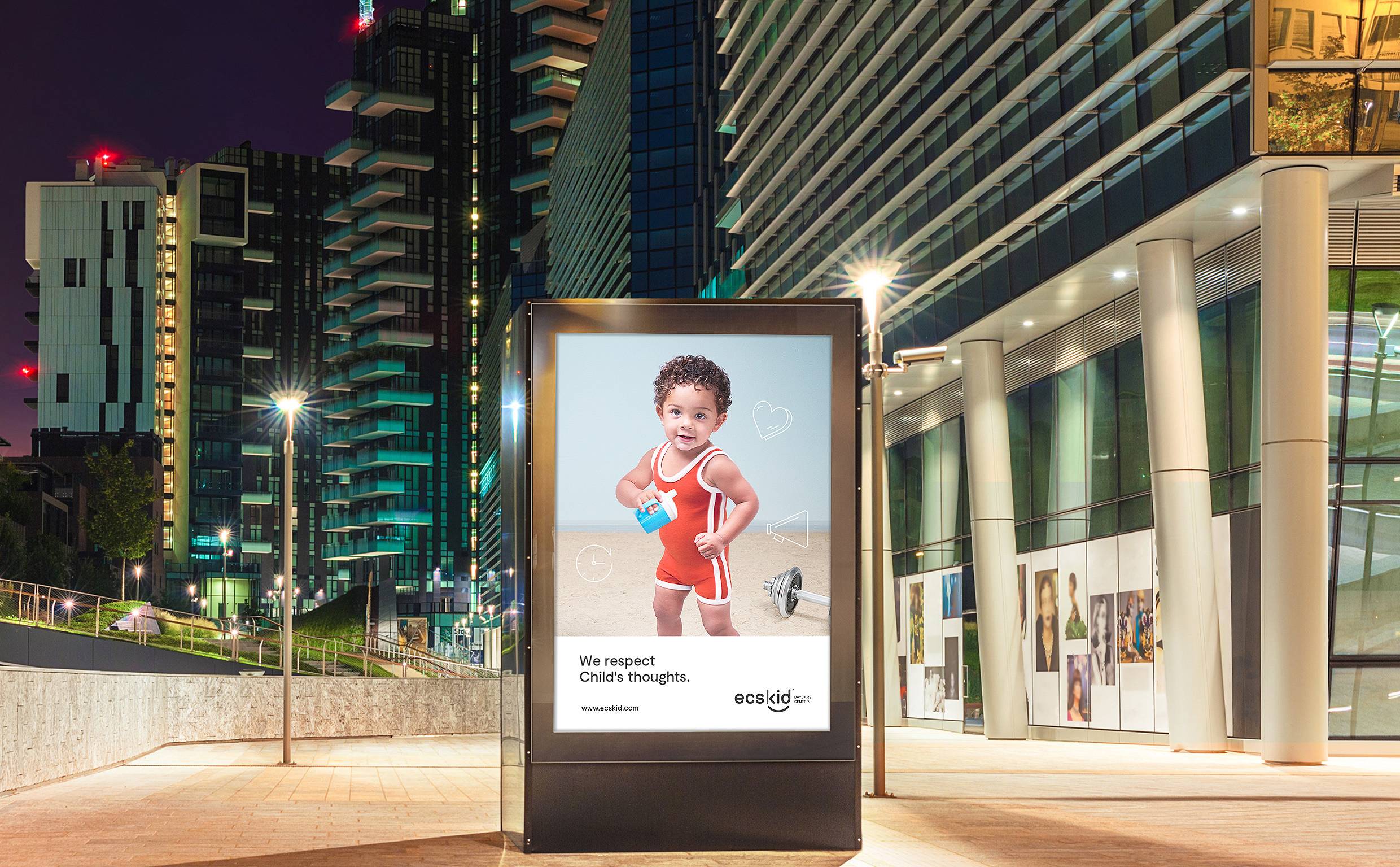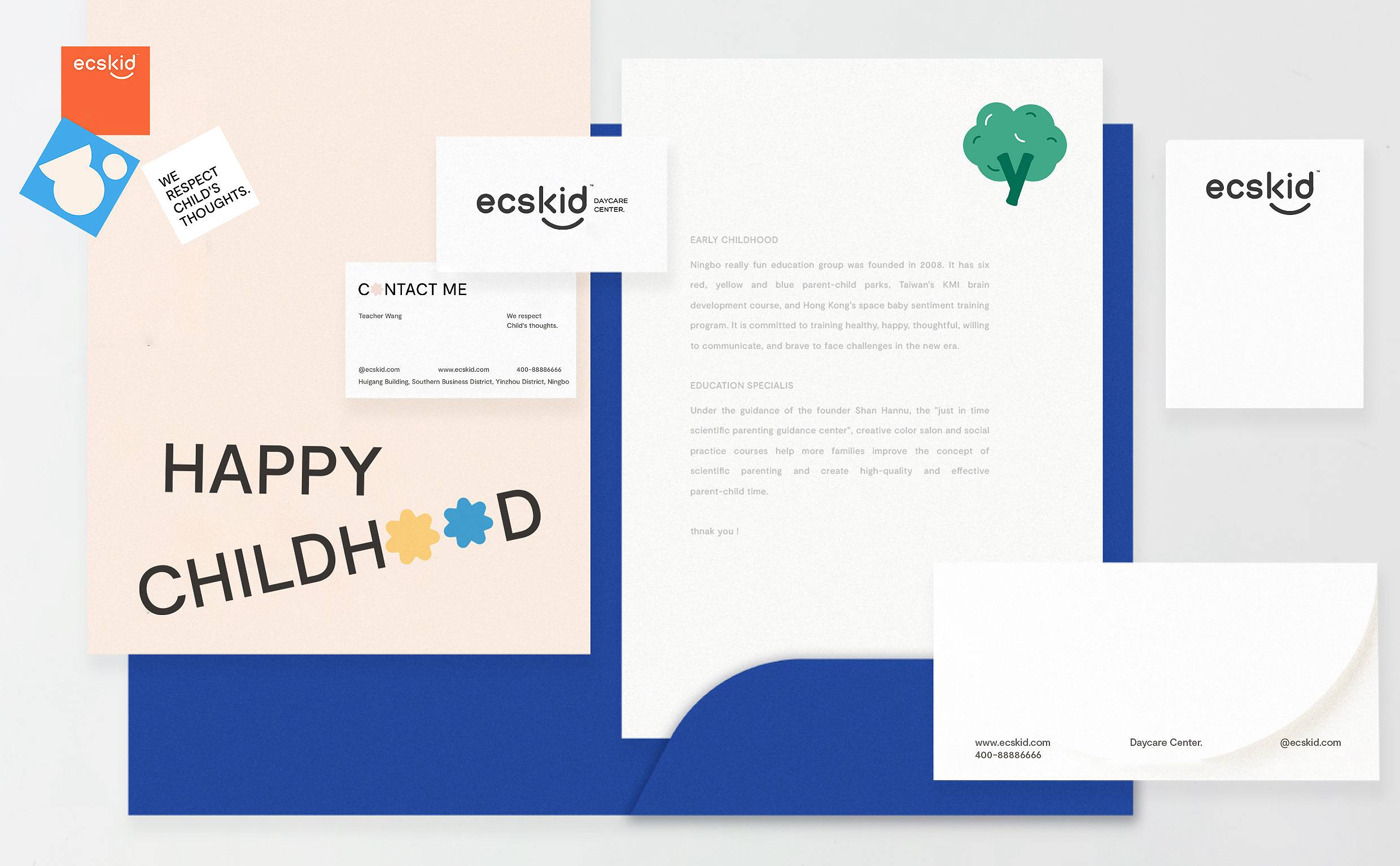 为了对品牌的品类联想更清晰,我们确定了“e=education,教育;c=care,关爱照顾;s=soport,运动;kid=儿童”的品牌内涵,以此组成品牌的英文名称,以符合“专注早教、托育、体适能”的品牌定位。