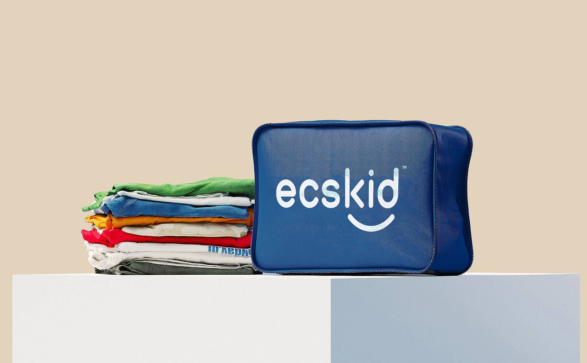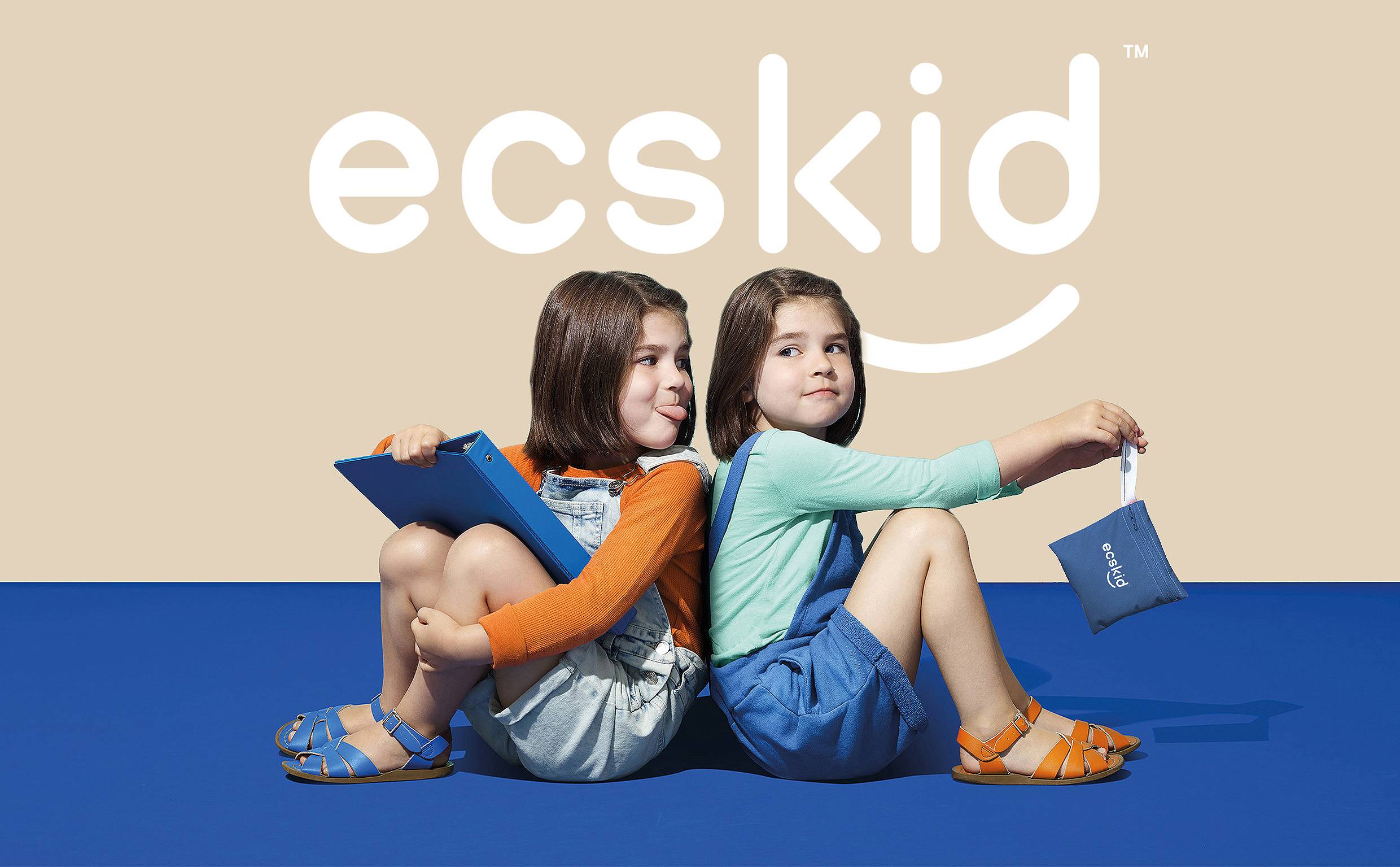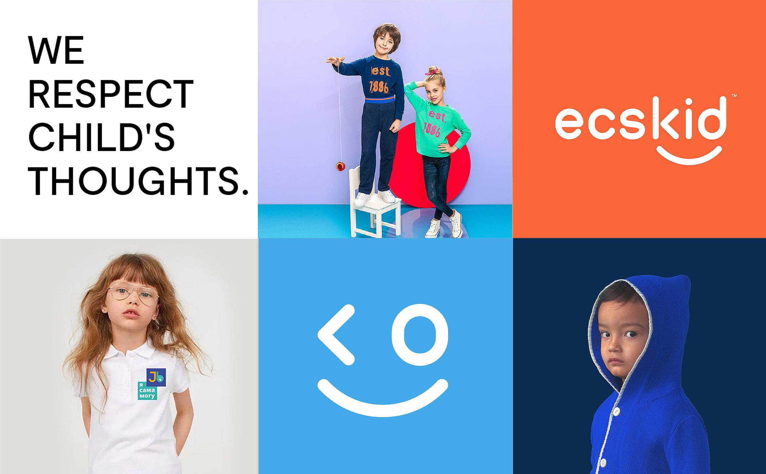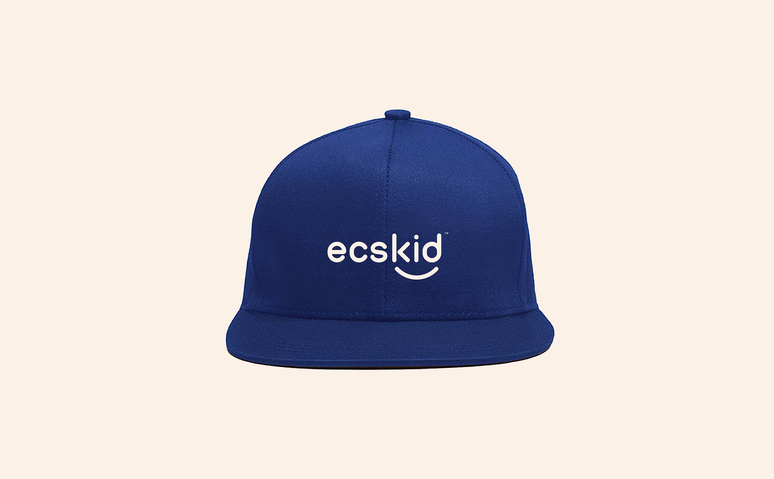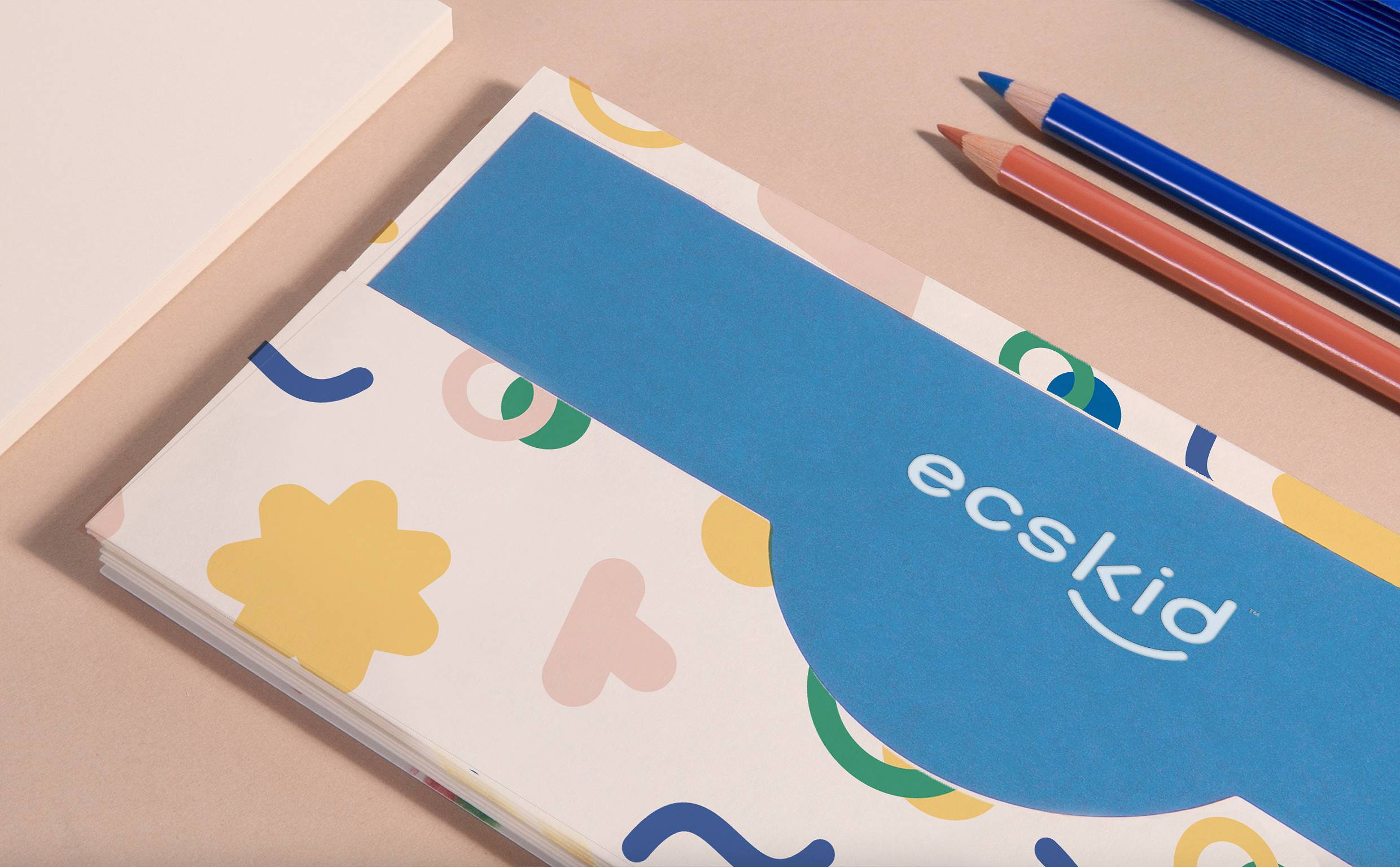 在标识设计上,为了表现品牌倡导的教育理念,呼应“ecskid”品牌名称,巧妙的通过点缀“微笑弧线”“用心呵护”组合成为⼀种差异化的视觉记忆点。