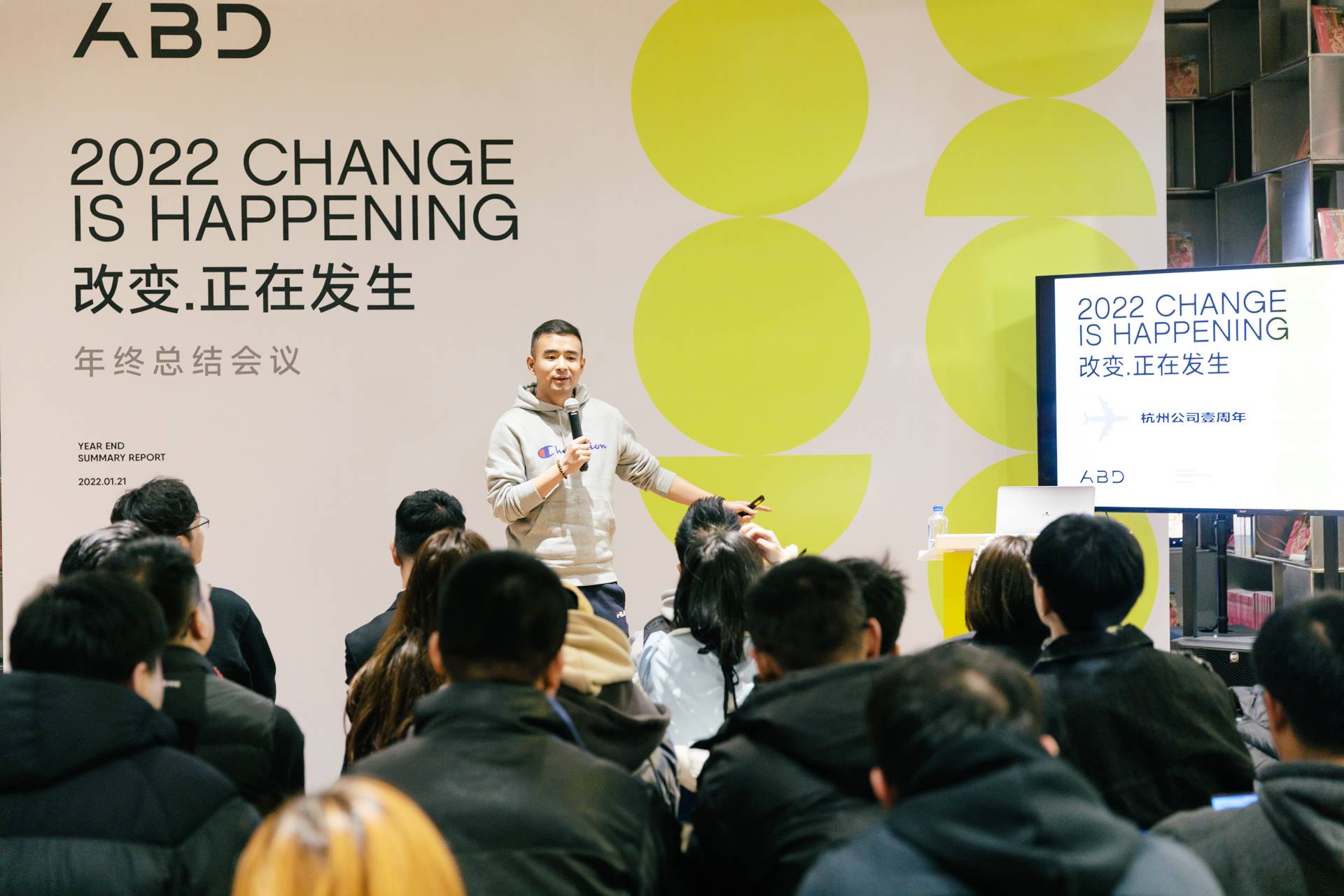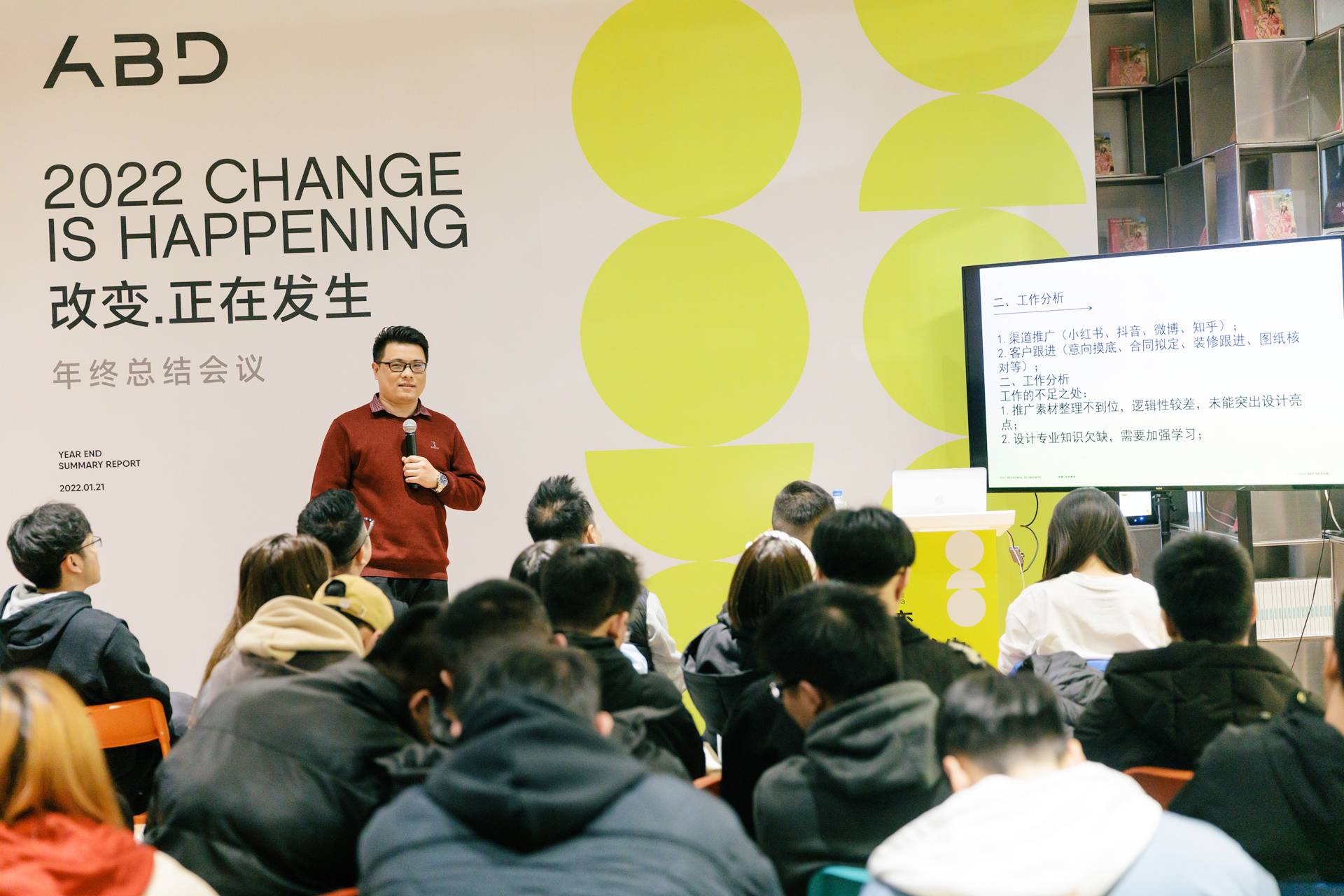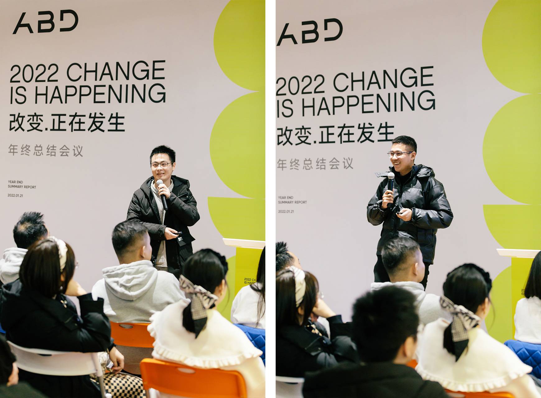 每一次的总结,每一次的期许,既是自我的展现与表达,也是思想的交流与碰撞。首先由ABD Boss张博发表致辞,以“改变是为了最初的自己”为观点,诠释了创立ABD的初心以及使命——“用我们的设计,改变世界”。分享了忙碌充实、全力以赴的2021年,展开了对未来的目标与规划。改变,为品牌提供更为专业的策略美学!