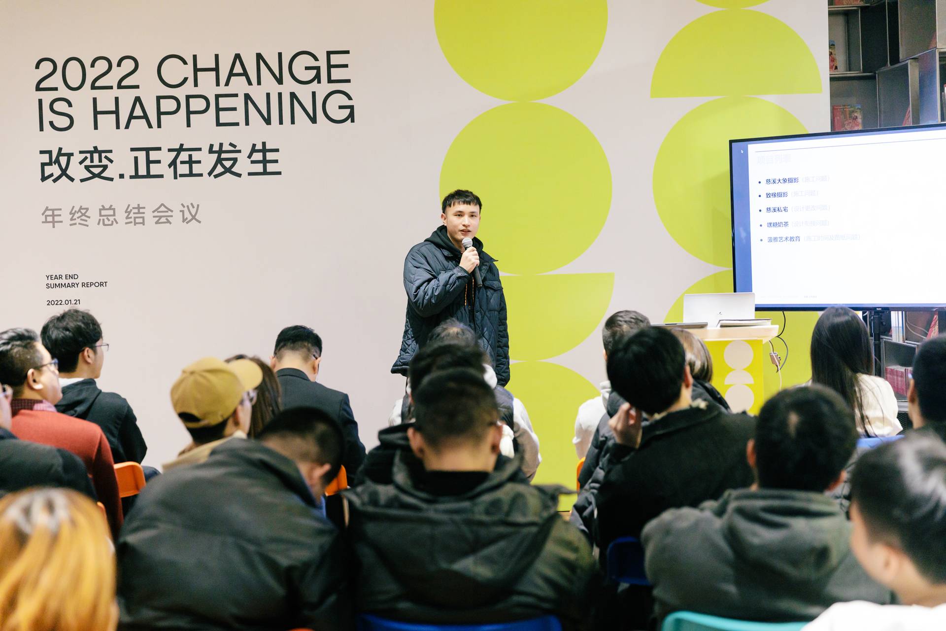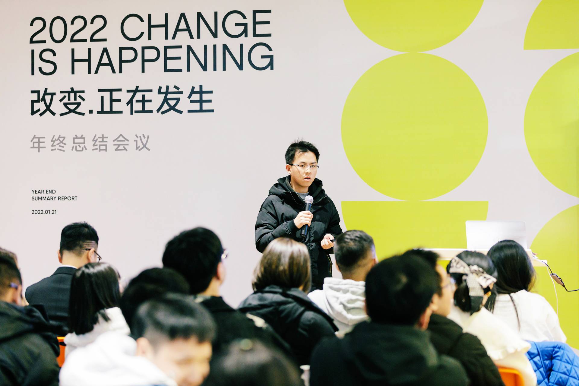 接着其他小伙伴依次上台总结畅谈,在此之中,让我们看到了每个人不同的性格底色,看到了各自潜藏的无限能量。2022年,我们继续彼此并肩,努力地向前奔跑,一起“用我们的设计,改变世界”。
