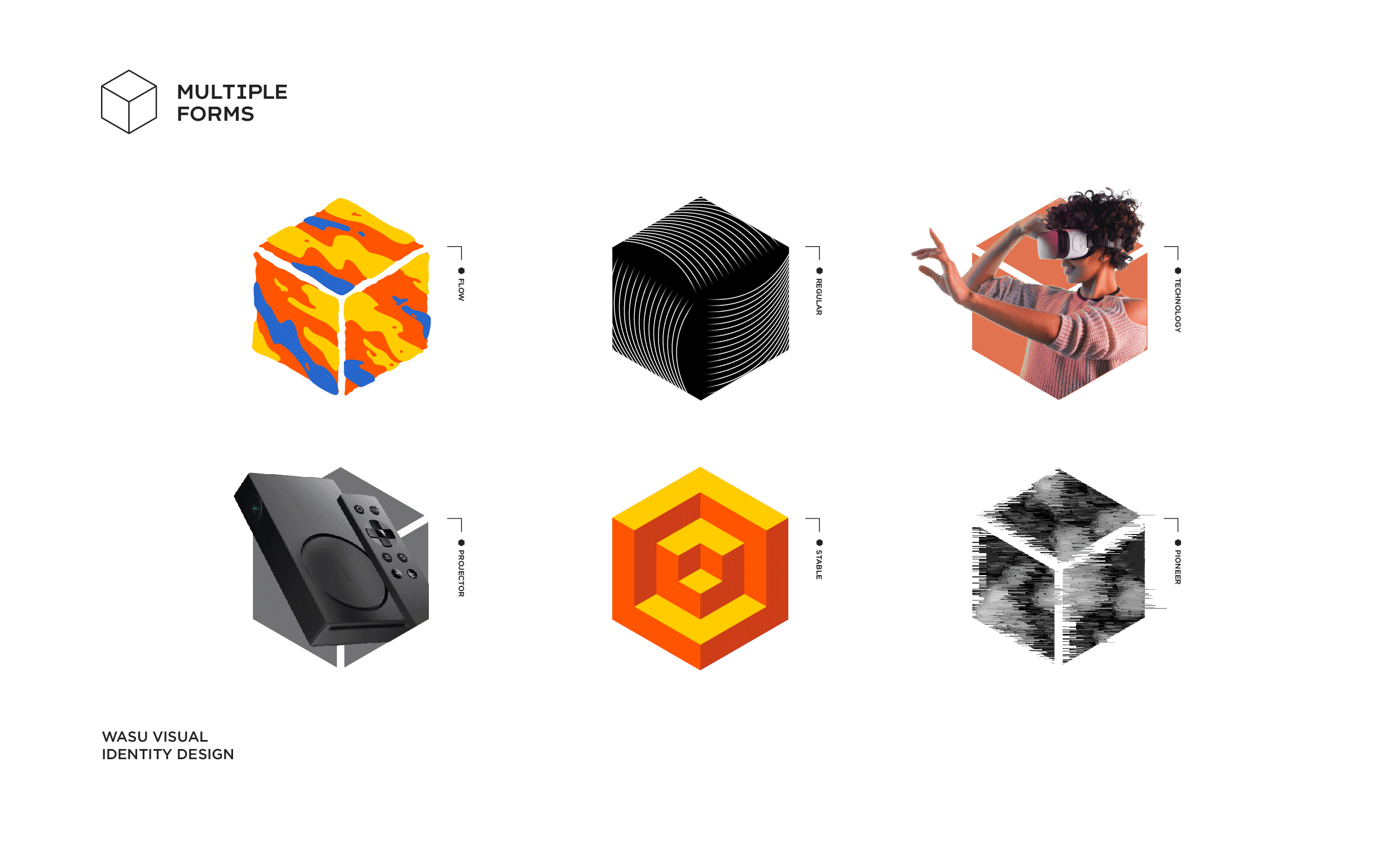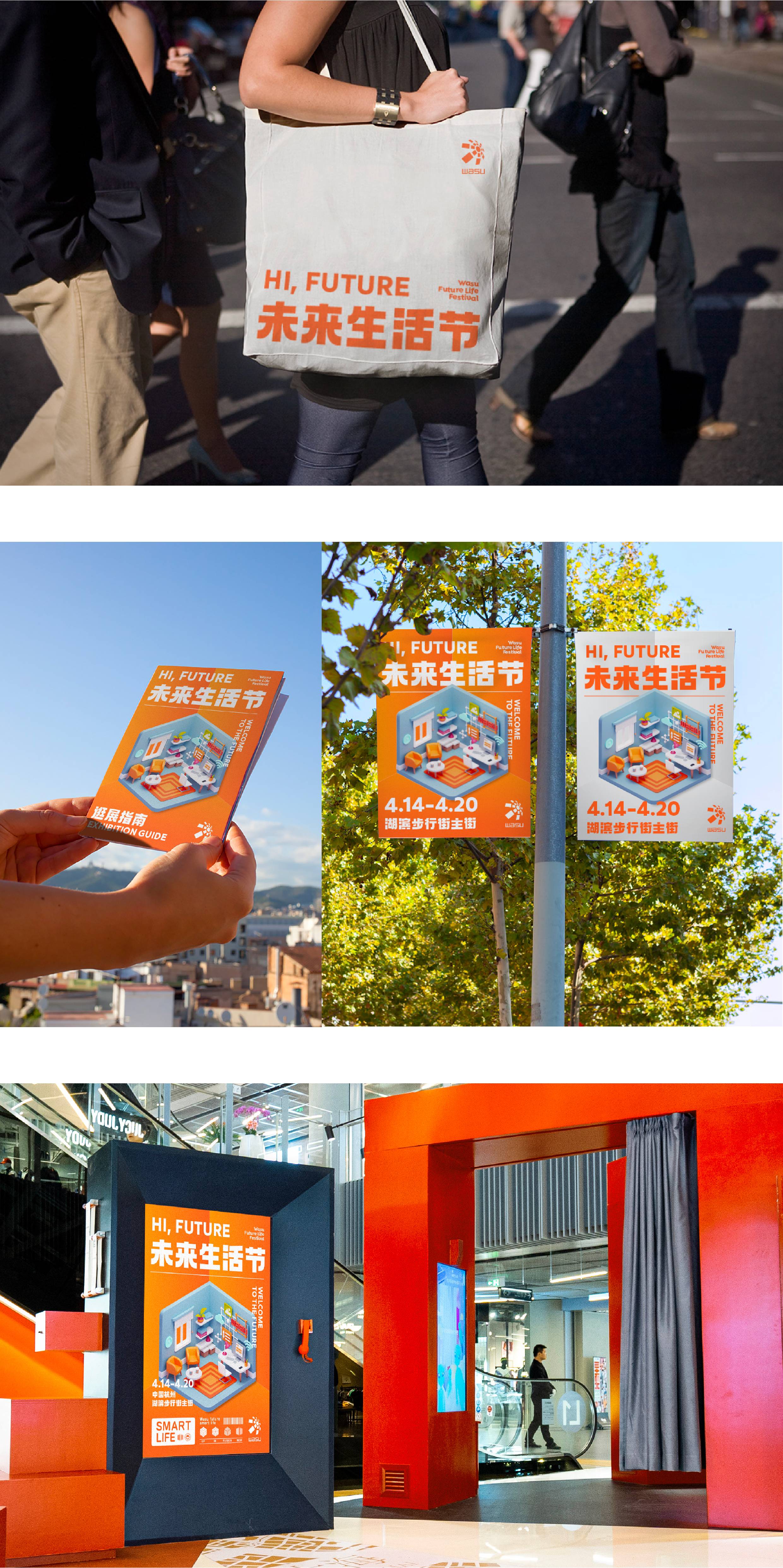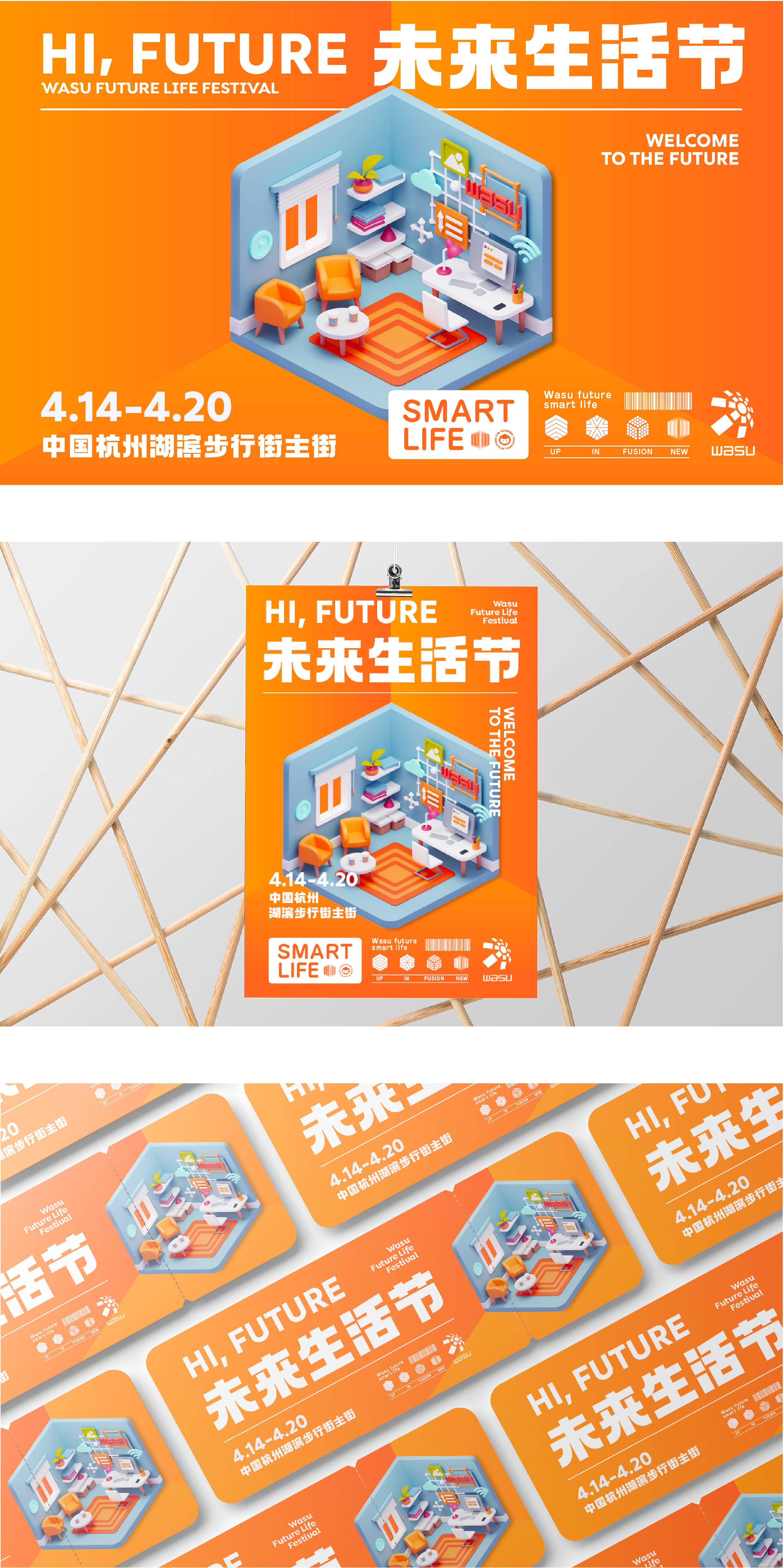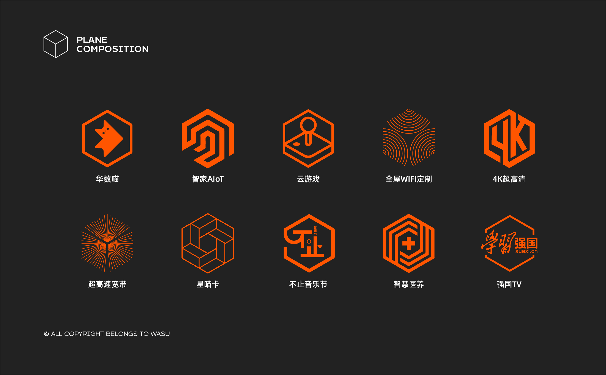 符号是构成视觉语言的基础,它可以应用在任何的场景中,具有无限的、多维的延伸度;我们在品牌传播策略与橙智生活标志中找到了契合点,创造出属于华数品牌年轻化的视觉符号——立方体,它代表着智慧空间、智家、未来生活。